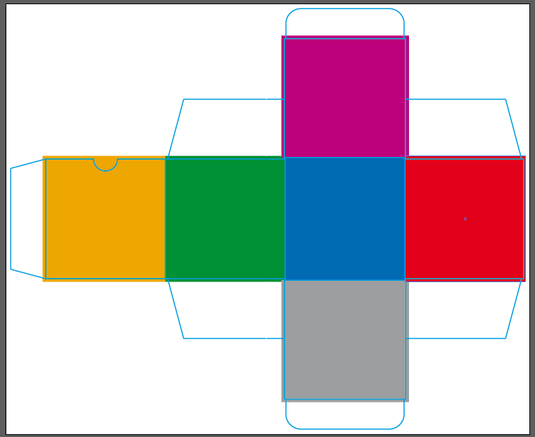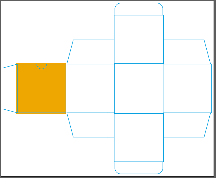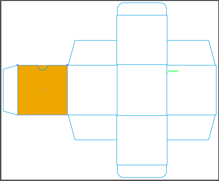 Bien, vamos a comenzar con la línea de troquel (el diseño estructural), que es como comenzaremos prácticamente todos los diseños de packaging. Te dejo aquí la imagen: